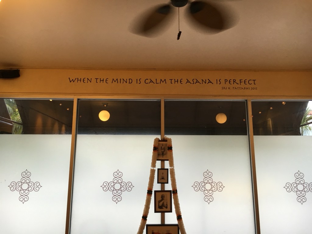 J’arrive un peu en retard et m’excuse. L’accueil me rassure en souriant : « Pas de problème, c’est le Mysore, tu peux arriver quand tu veux. » Je n’ai aucune idée de ce que cela signifie, mais j’entre dans la salle.