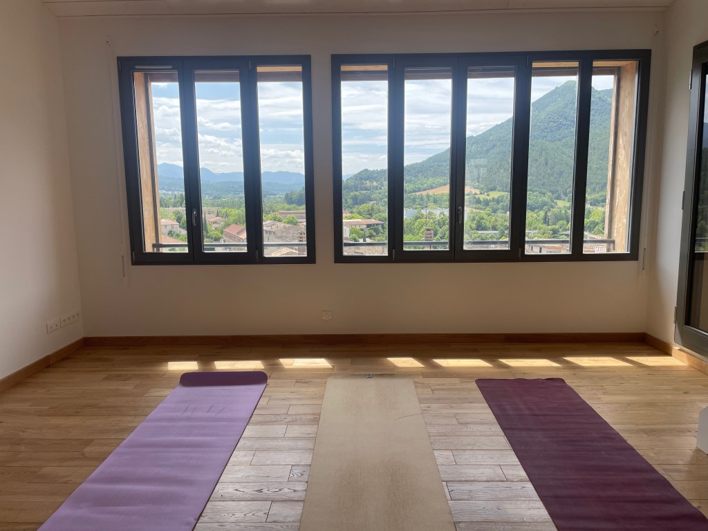 Drome Yoga Shala vous accueille pour des pratiques en petit groupe dans une salle lumineuse avec une vue imprenable sur Die et les montagnes alentour.